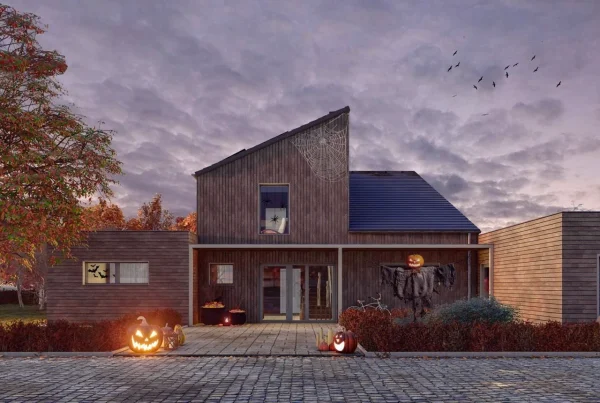 Применение натуральных материалов и теплых оттенков создает гармоничный и привлекательный вид, который идеально вписывается в загородный ландшафт и дарит ощущение домашнего уюта.