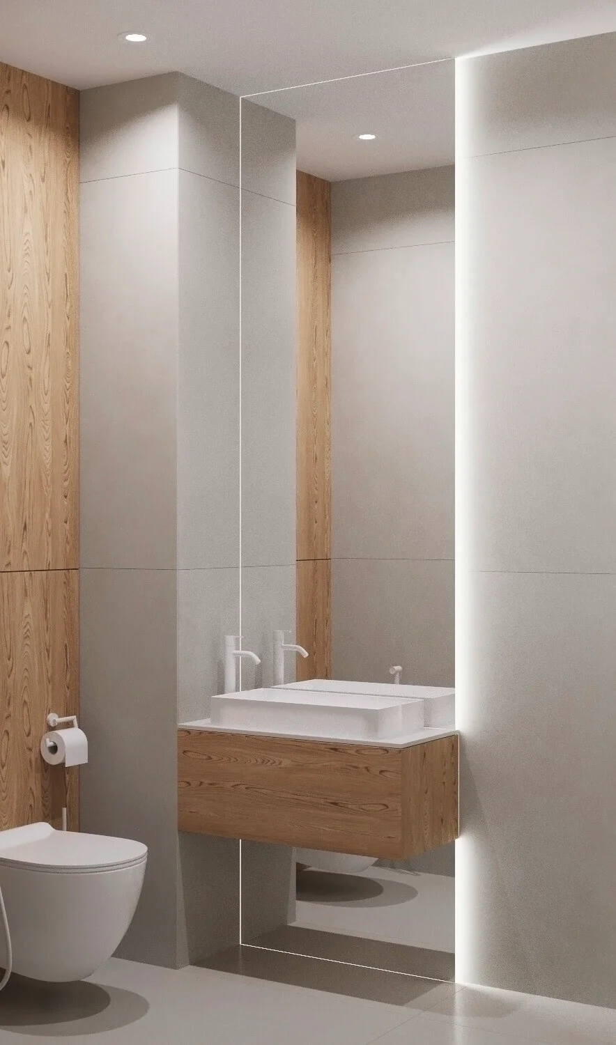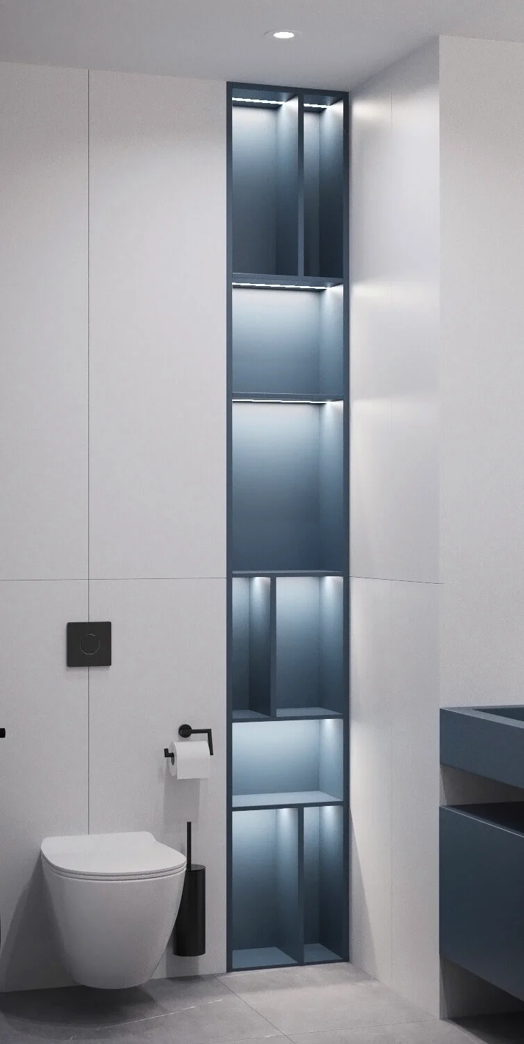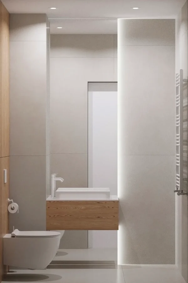 Акцентами стали – дерево светлого оттенка и синий цвет, именно они придали цвету и натуральности пространства.