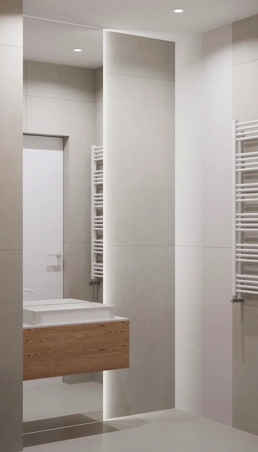 Квартира исполнена в современном минималистическом стиле. В площадь 65 м2 уместились – объединенная кухня-гостиная, мастер спальня, гостевая спальня и две ванные комнаты. Главным пожеланием заказчиков было создать максимально светлое пространство.