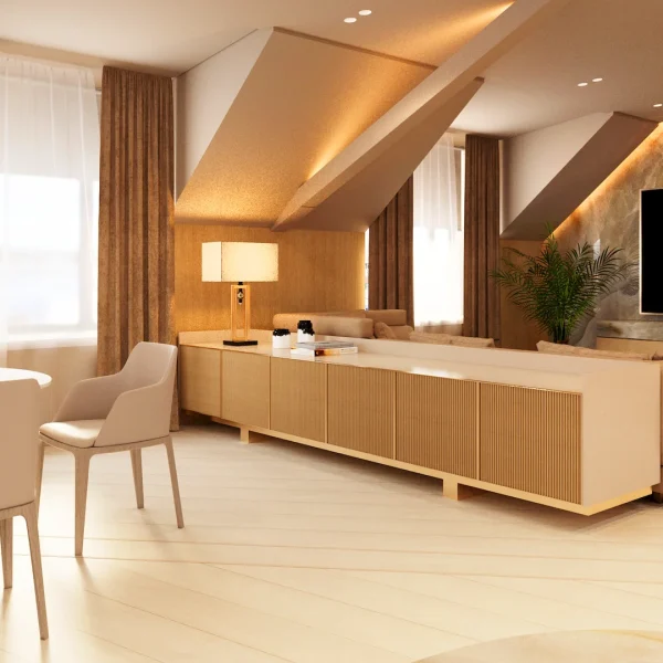 Персонализация: Каждое пространство может быть адаптировано под индивидуальные потребности и вкусы заказчика, подчеркивая его уникальность и стиль.